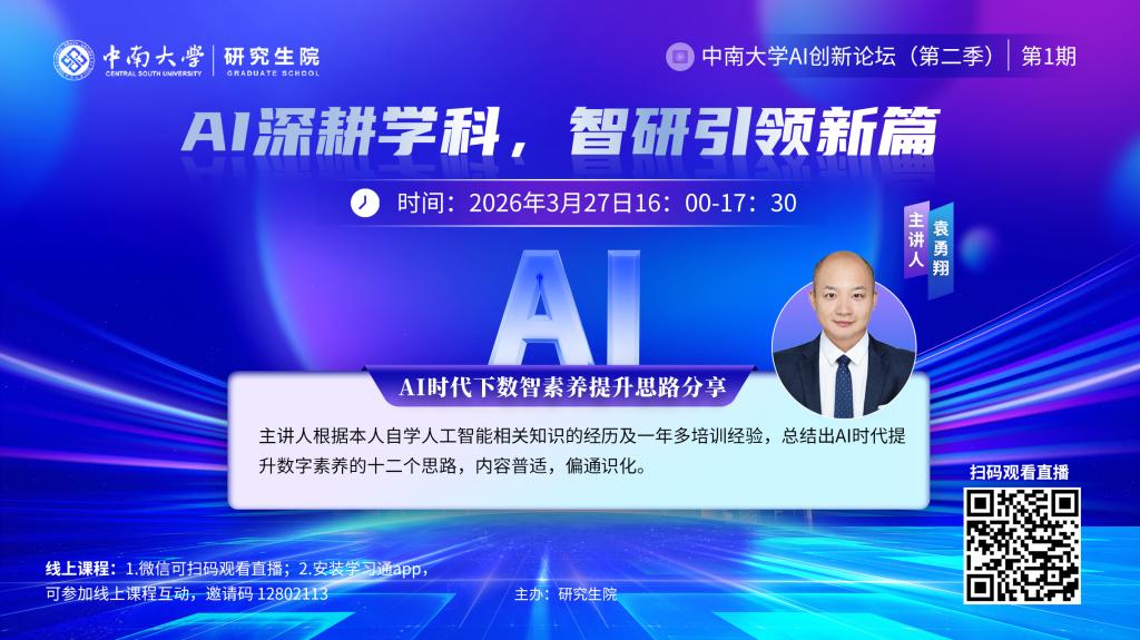论坛名称:中南大学AI创新论坛(第二季)